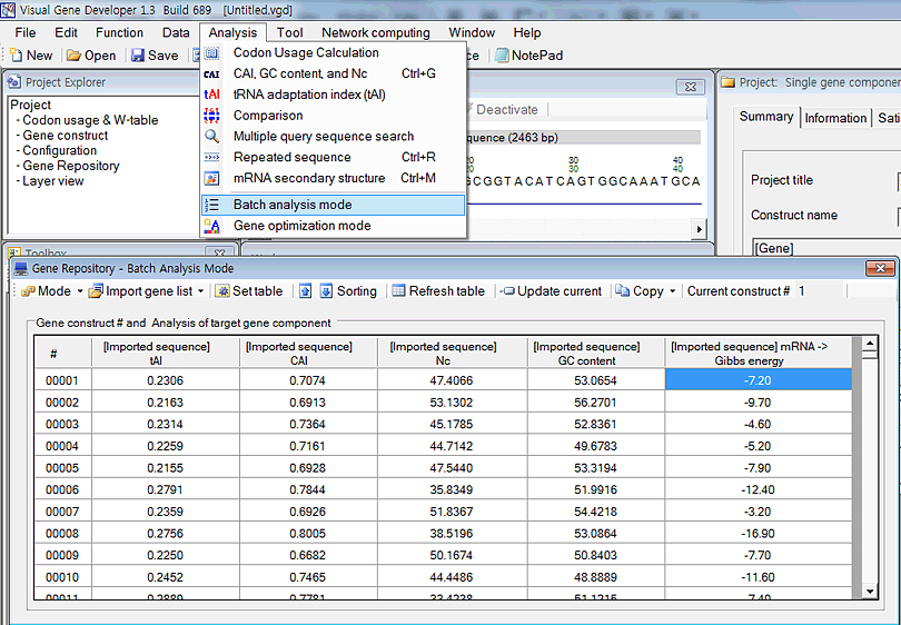 New update! The 'Gene Optimization' window has been updated to 'Gene Repository' window A user can choose convenient mode between 'Batch analysis mode' and 'Gene optimization mode'